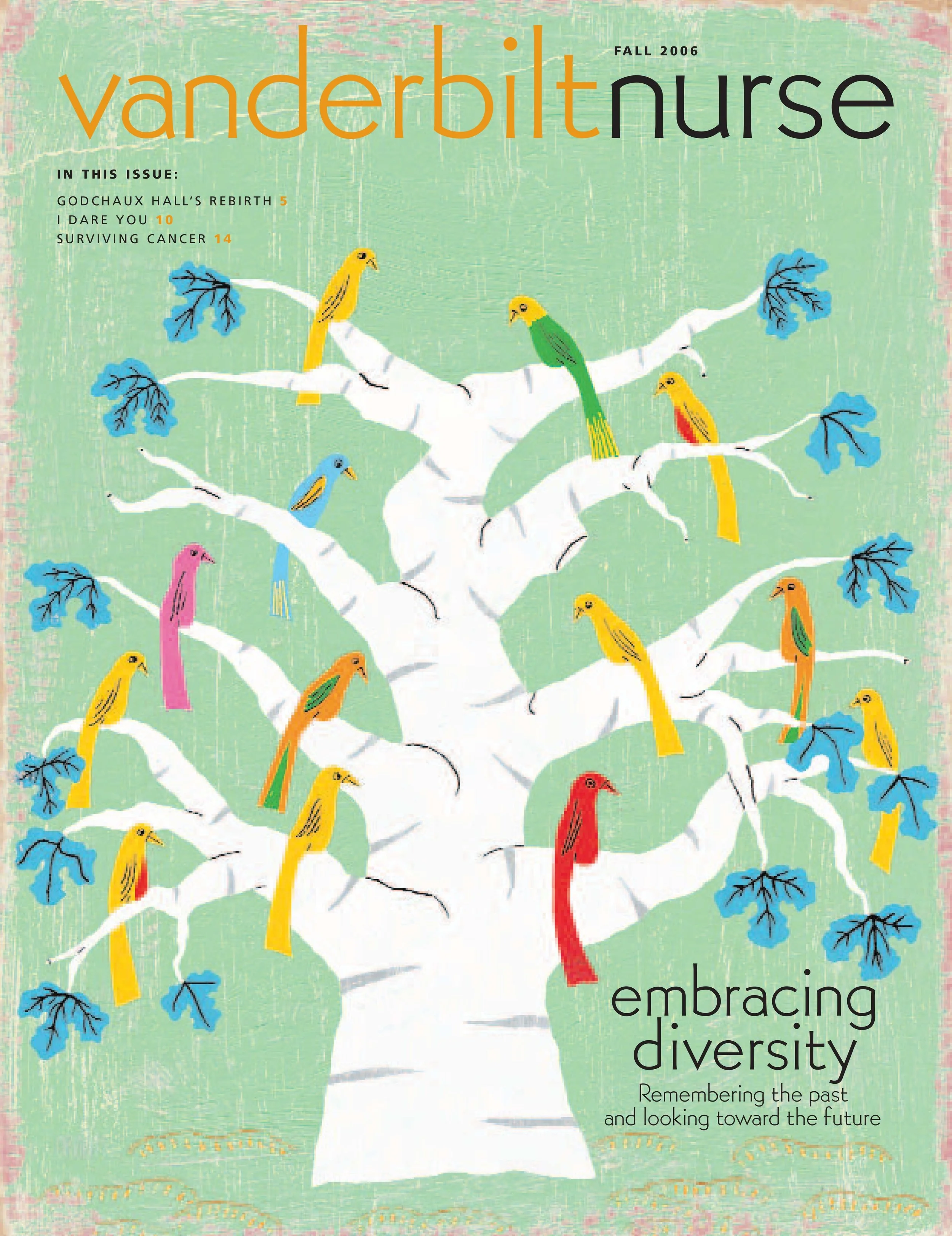 Vanderbilt Nurse Magazine is an alumni publication produced by the School of Nursing at Vanderbilt. It highlights advancements in nursing education through stories of students, alumni, and patients.